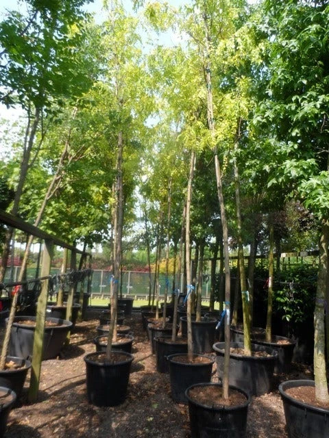 Robinia pseudoacacia ‘Frisia’ (Gele Acacia) is met zij gle bladeren een opvallende verschijning in de tuin. Robinia pseudoacacia ‘Frisia’ kan een boom van circa 10 meter hoog worden, Deze gele Acacia houdt een open kroon waardoor er nog veel zonlicht doorheen schijnt. De takken van Robinia pseudoacacia ‘Frisia’ zijn scherp gedoornd. In de zomer komen er roomwitte bloemetjes aan de Robinia pseudoacacia ‘Frisia’.